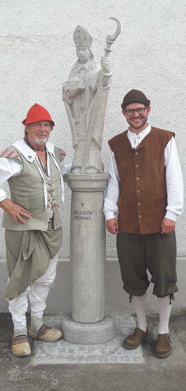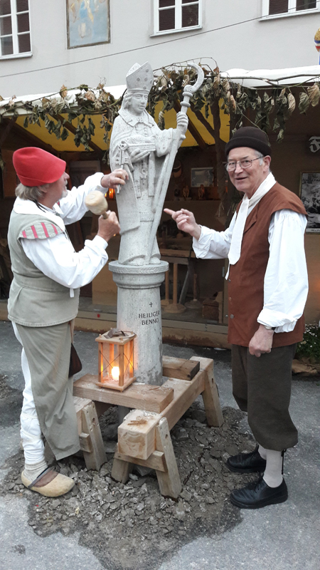 Die Skulptur vom Heiligen Nikolaus wurde 2015 für die Fieranten des "Friedberger Advents" gefertigt. Im Juli 2016 fand die Einweihung des "Heiligen Benno" in der Bennomühle statt, während der "Friedberger Zeit".